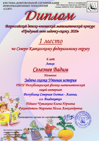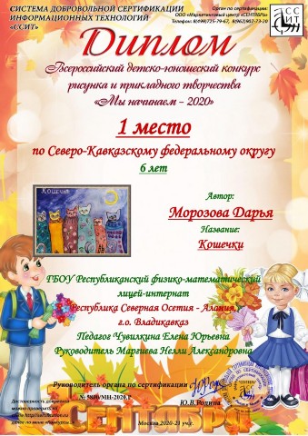 Так, ученица 6 класса Хабиева Елизавета удостоена диплома ll степени, ученик 9 класса Качмазов Руслан стал победителем в своей возрастной группе и получил диплом l степени, а ученица 9 класса Джанаева Софья получила диплом участника конкурса. подробнее